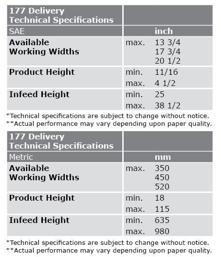 Detailed technical information for the 177 VERTICAL STACKING DELIVERY
