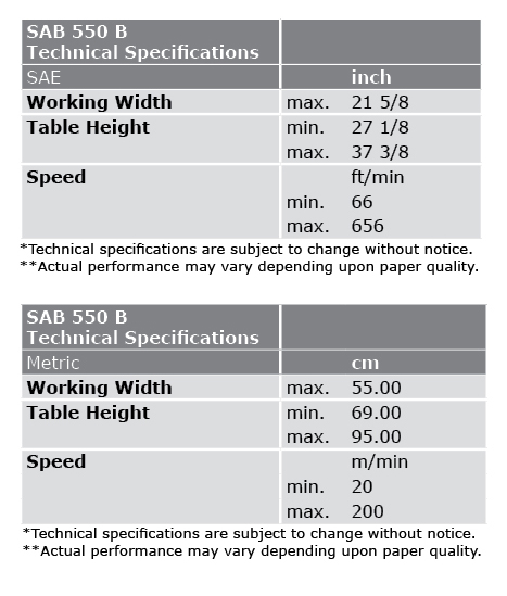 Its adjustable round belt infeed ensures a smooth and efficient sheet transfer for a variety of job formats. After the die cutting process, the SAB 550 delivers the product in a uniform shingled order for easy handling.